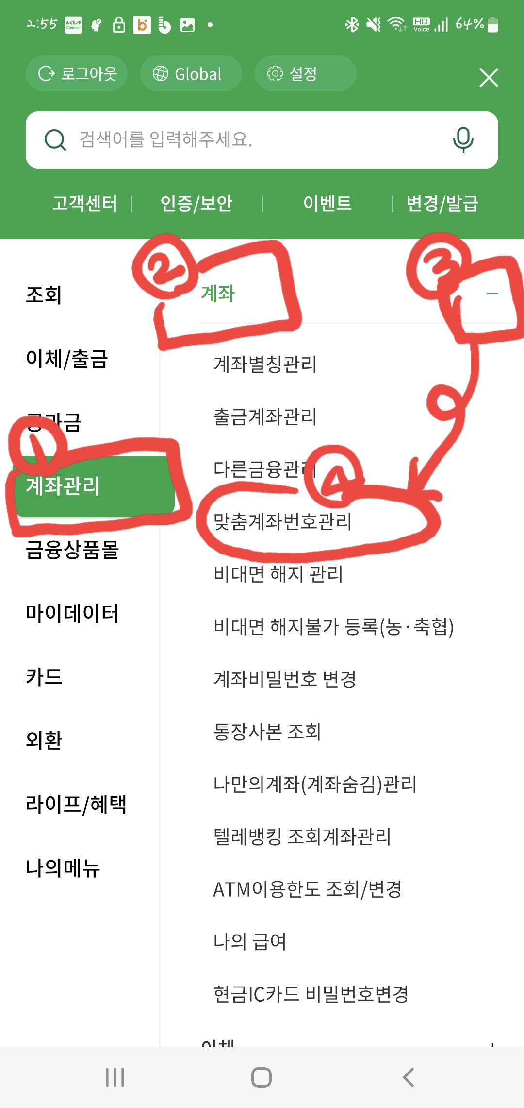 추가 메뉴중에 맘춤 계좌번호 관리를 눌러주세요