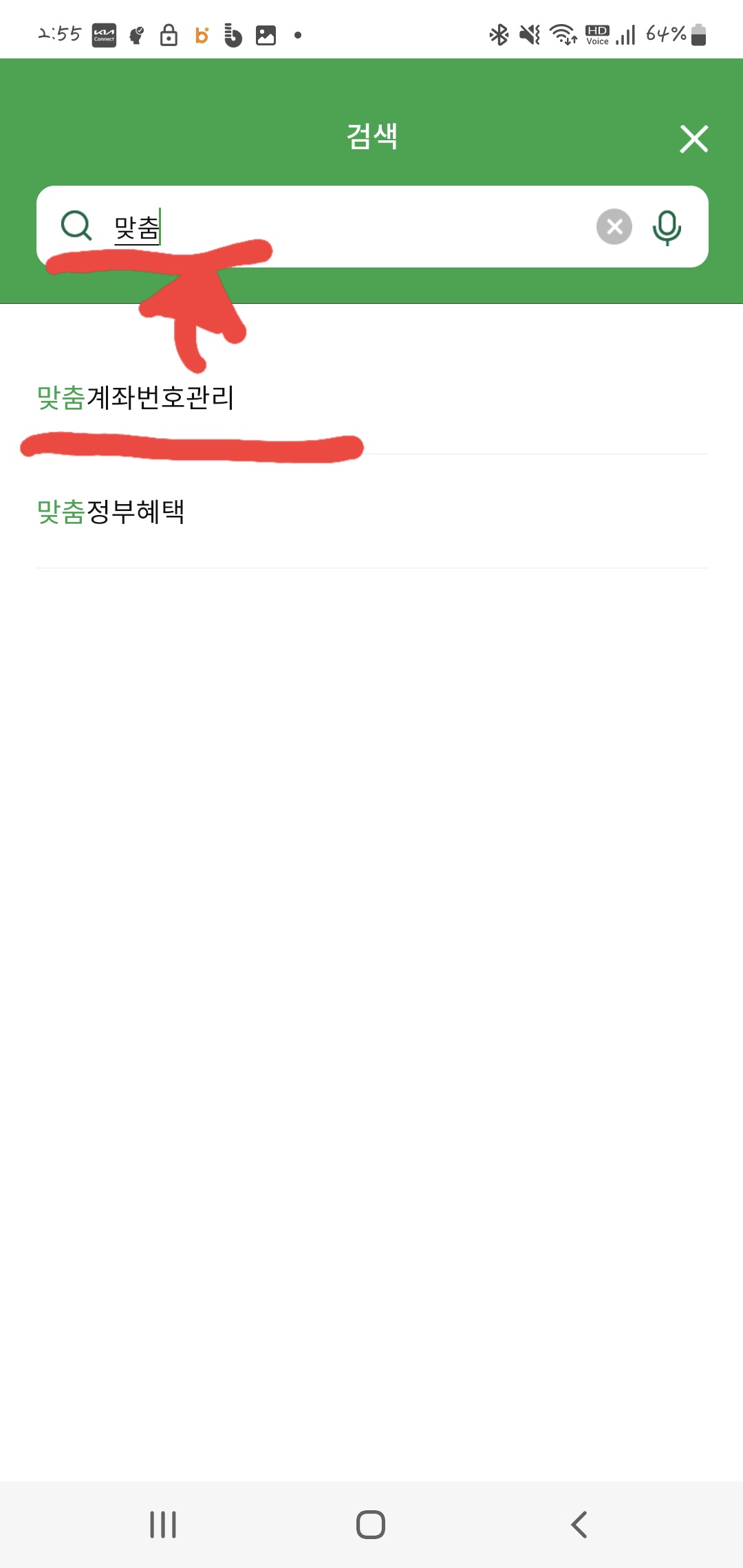 상단 검색어에서 <맞춤계좌번호관리>를 바로 검색해서