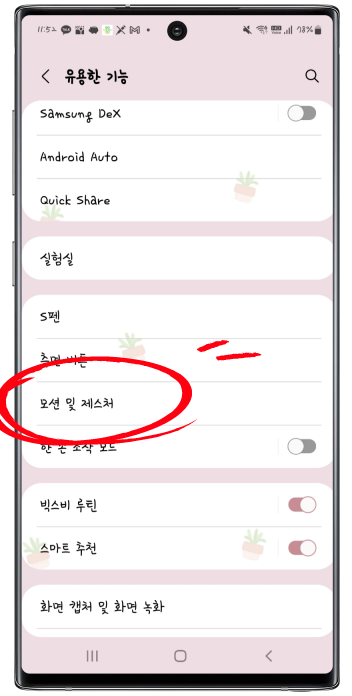 <모션 및 제스처>버튼을 찾아주세요