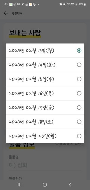 보내는 사람의 정보입력이 끝난 후