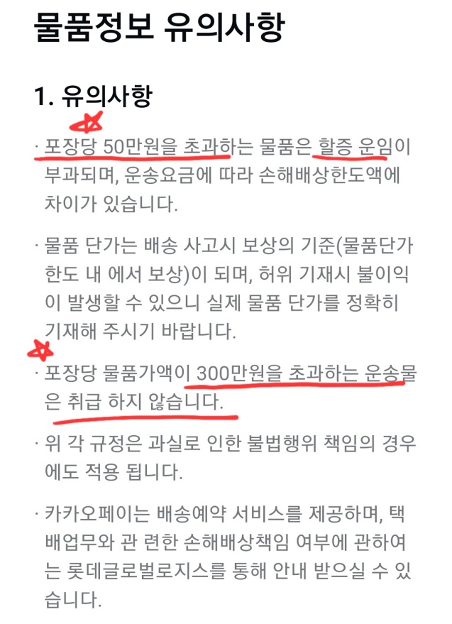 그리고 물건이 300만원이 초과하는경우는 아예 택배접수를 받지 않는다고 하니 이점 참고해 두세요!