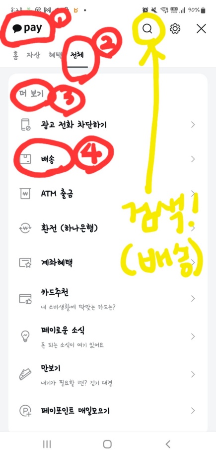 2. 카카오 페이 앱으로 택배배송화면 들어가기