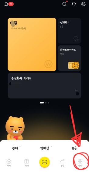 여기서 상단 왼쪽에 카카오페이 버튼을 살포시 터치해 줍니다.