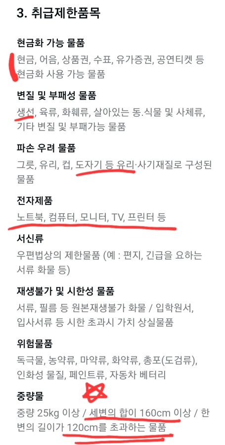 택배를 받지 않고 있으니 취급제한 품목도 한번 확인해 보시는게 좋습니다.