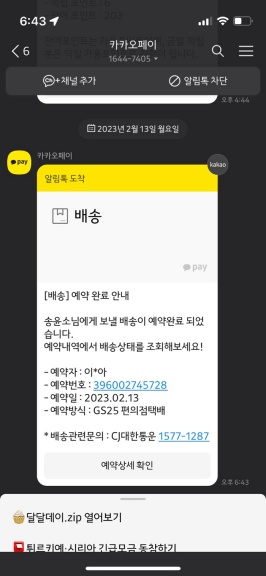 만약 택배를 취소할경우 취소 카톡이 가니 중고거래나 당근 거래 이용시 아주 유용하게 이용할수 있을것 같습니다 .