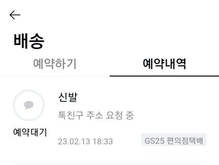 배송 예약화면 옆에 예약내역 으로 다시 들어가면