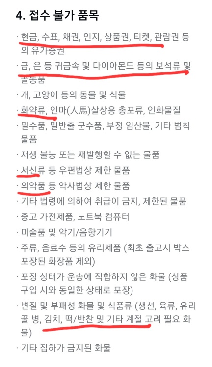 택배 거절당하는경우가 있으니 꼭 보내기 전에 참고 하시길 바랍니다.