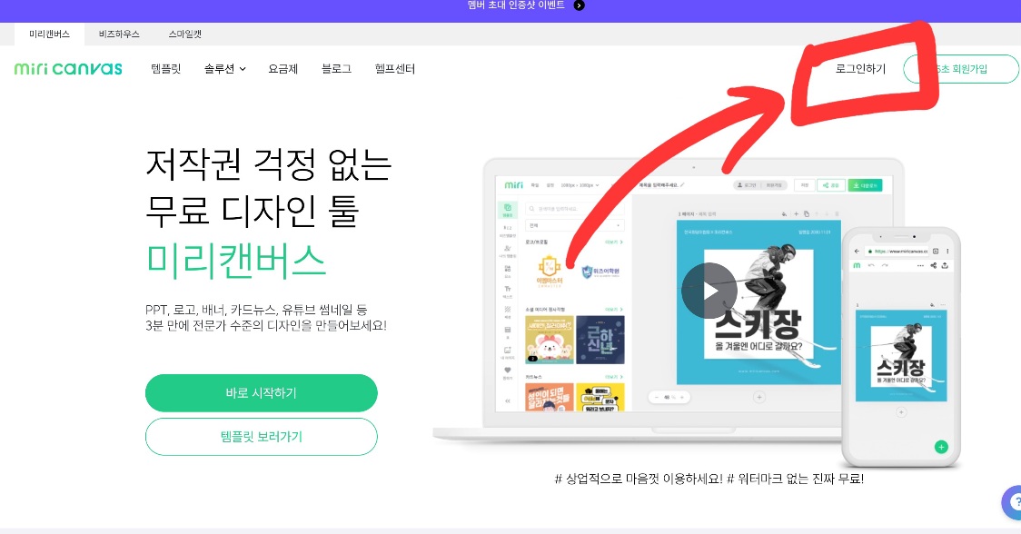 먼저 급한 마음에 휴대폰으로 미리캔버스를 들어갔습니다.
