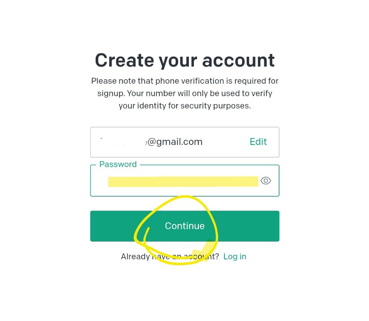 비밀번호를 입력해주시고 Continue를 눌러줍니다. 비밀번호는 8자리 이상이어야 한다네요.
